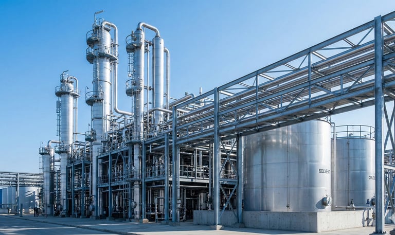 We design and deliver state-of-the-art oilseed processing facilities that integrate high-efficiency mechanical crushing with advanced hexane solvent extraction systems. Our turnkey solutions are engineered to maximize oil recovery rates while minimizing solvent consumption and energy usage. From seed preparation to miscella distillation and meal desolventizing, we ensure fully automated, safety-compliant operations tailored to your specific capacity requirements.